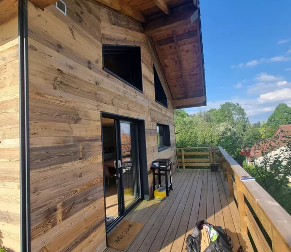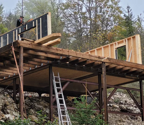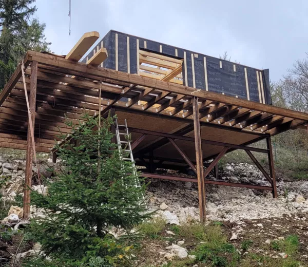 Conception et réalisation d’un chalet en ossature bois sur structure surélevée, parfaitement intégré à son environnement naturel. Ce projet met en valeur le travail du bois, la création de volumes ouverts et une architecture adaptée au terrain en pente. De la structure à la finition bardage, chaque étape a été réalisée avec une approche artisanale pour garantir solidité, durabilité et esthétique.