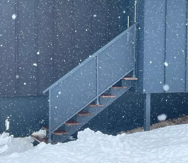 Conception et installation d’un escalier extérieur avec structure métallique et marches bois. Finitions modernes et robustes, assurant sécurité, durabilité et intégration harmonieuse à l’architecture du bâtiment.